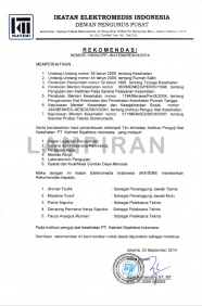 - Ikatan Ahli Teknik Elektromedik Indonesia (IKATEMI) dengan nomor: 138/III/DPP IKATEMI/REK/I/2014