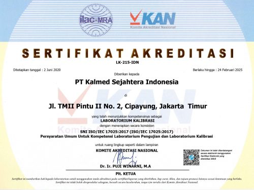 - Akreditasi SNI ISO 17025 : 2017 Laboratorium Kalibrasi PT. Kalmed Sejahtera Indonesia (LK-215-IDN)