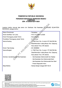 - Sertifikat Standar Balai/Institusi Pengujian Fasilitas Kesehatan PT. Kalmed Sejahtera Indonesia nomor : 81200097924710002