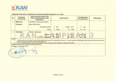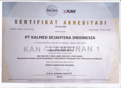 - Operational Licensing Institution for Testing Medical Facilities of PT. Kalmed Sejahtera Indonesia Decree of the Director General of Health Services Number: HK.02.02 / I / 0897/2019.