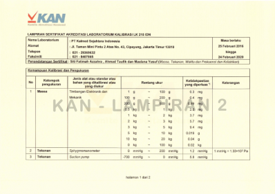 - Calibration Certificate from KAN LK-215-IDN (ISO 17025).